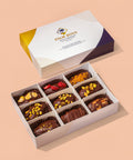 The Beirut Two Bite Variety Box brings together our boldest chocolate-covered dates in one refined assortment. Each two-bite piece balances soft, naturally sweet dates with rich chocolate and expressive fillings, moving between nutty, fruity, and indulgent flavours with ease.