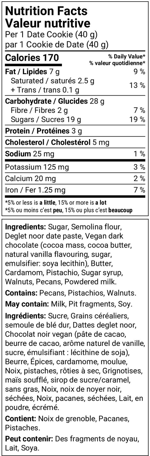 Date Cookies are a great treat as you get the smooth sweet taste of the dates on the inside with a mix of the buttery goodness of the cookie. This box combines all four incredible flavours we have at Palm Bites: Chocolate, Pistachio, Walnut and even Pecan Caramel.