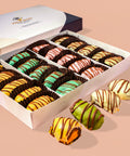 Experience a vibrant twist on indulgence with our Fruitmania collection. Each Medjool date is filled with luscious fruit cream and coated in a matching white chocolate shell for a double layer of flavor. Inside the box, you’ll discover four fruity sensations:
