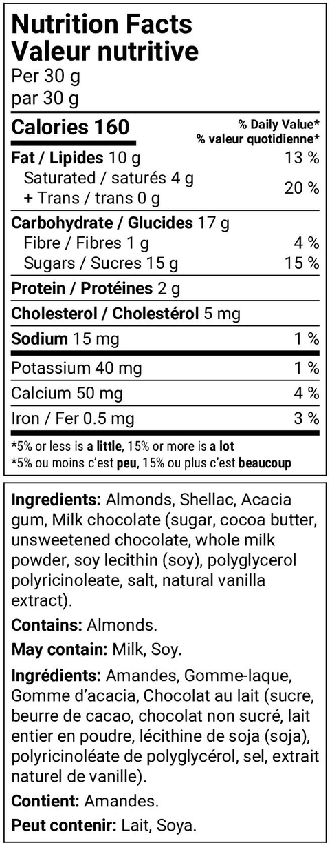 Whole almonds coated in a thick layer of delicious milk chocolate. Ideal to snack on with a box of Palm Bites.