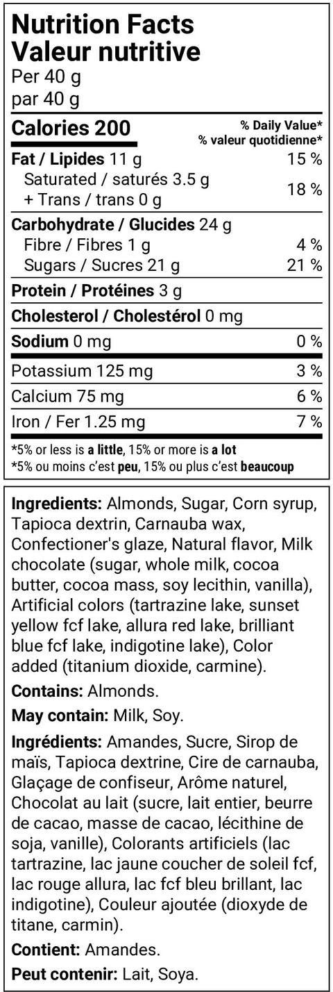 Chocolate Jordan Almonds are almonds surrounded by a layer of sweet milk chocolate and finished with a colourful candy-coating. Typically given out as party favours, these confections can also be added to any dessert table or handed out during Ramadan / Eid, and other special occasions.